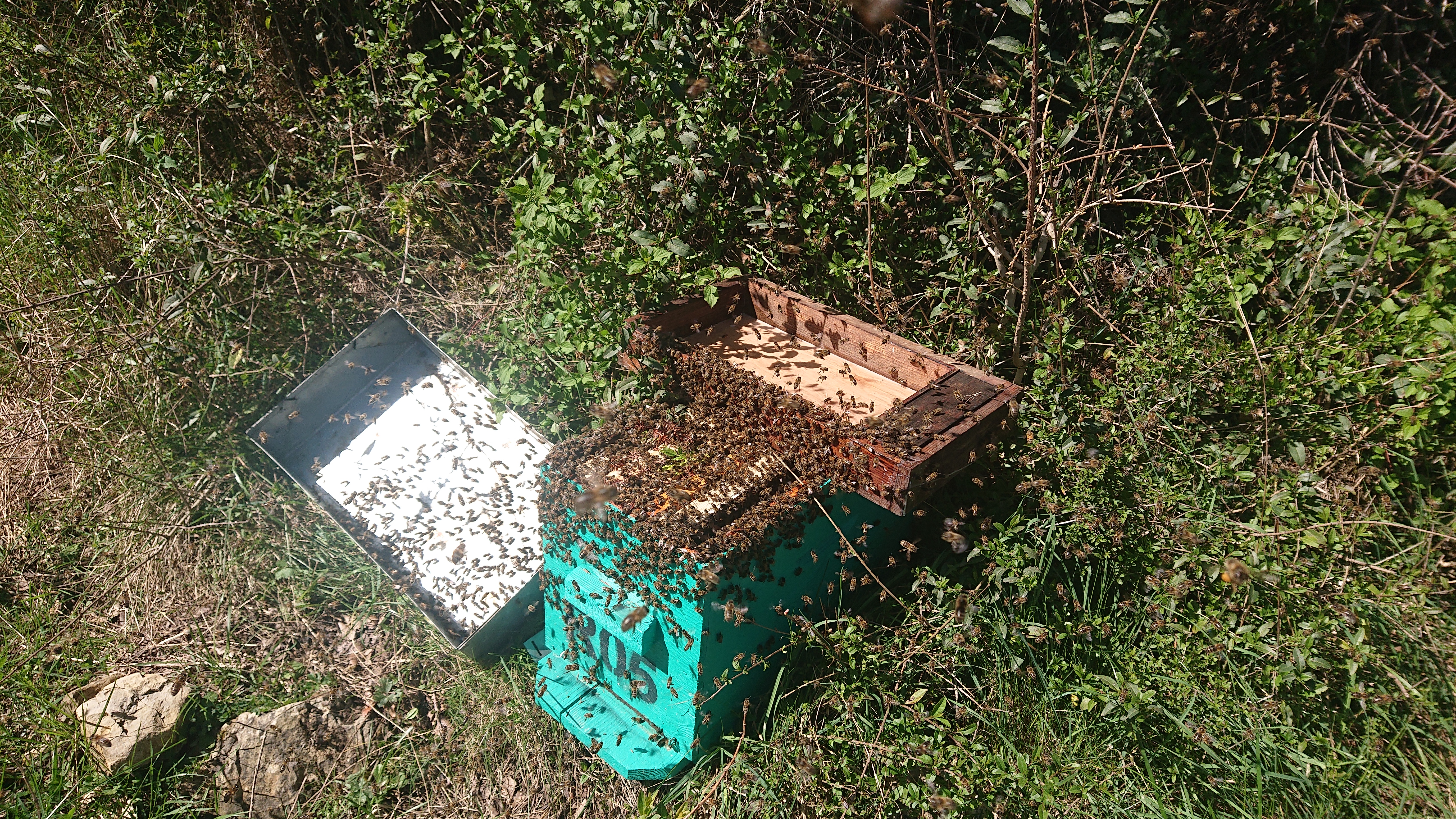 – Achat d’une première ruche et récupération d’un essaim